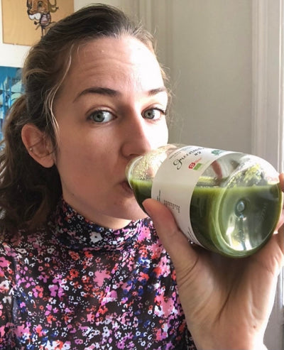 5 x Greenie#1 med spinat, broccoli, agurk, banan, citronsaft, ingefær, vand